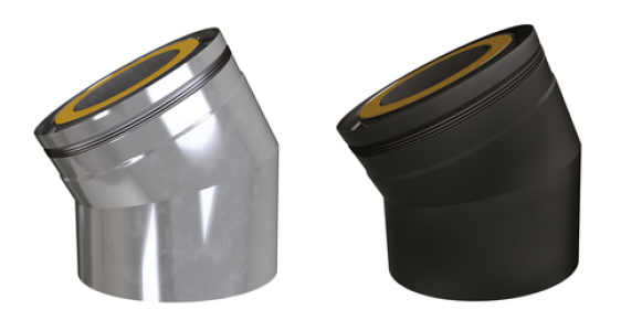 Coude Octans Bois permettant le dévoiement d'un conduit de fumées triple paroi isolé avec évacuation des fumées et amenée d'air comburant - Prévoir une bride de sécurité Octans Bois.