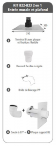 Kit pour installation murale et plafond gamme Pegasus PPDisponible en Ø60 et Ø110, terminal finition ardoise