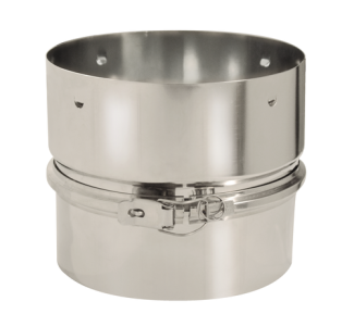 Raccord flexible sur tyral, permettant le raccordement du flexible de tubage à la fumisterie tyral - Livré avec bride de sécurité - Avec ergots de maintien du flexible - Finition inox 304.