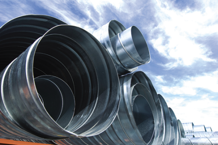 Conduit circulaire en acier galvanisé agrafé en spirale.