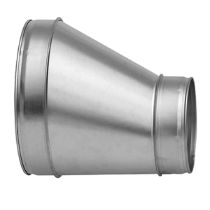 Accessoire mâle en acier galvanisé de forme excentrée permettant le raccordement de deux conduits de diamètres différents